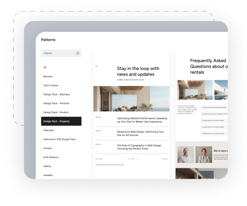 Block-based layout patterns to enhance your website building experience.