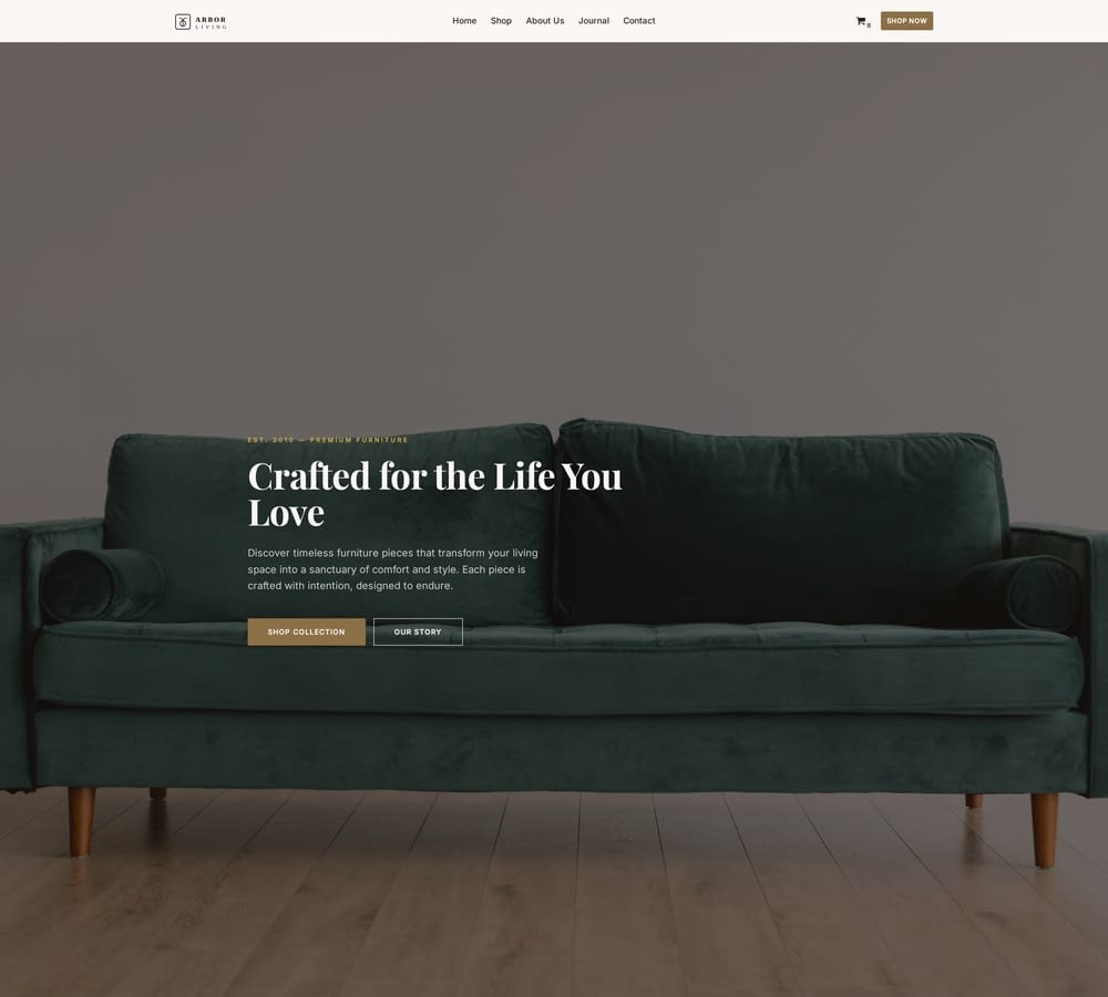 Refined furniture store website template designed for furniture retailers, home interior brands, and bespoke makers. Present collections, room inspiration, and a shoppable catalogue with an elevated, editorial-meets-commerce layout.