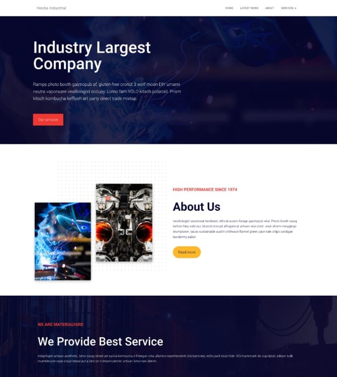 Project strength, reliability, and scale with a site that matches the weight of your work. Our Hestia Industrial website template is built for manufacturers, contractors, and industrial businesses that need a professional, no-nonsense digital presence to showcase their capabilities and attract serious buyers. Make it easy for the right clients to find you and trust you from the first visit.