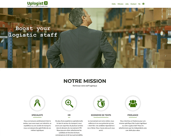 A great looking multilingual site with a big header slider and a green color as an accent. Uplogist offers headhunting in logistics & supply chain services. Check out the latest jobs in the bottom part of the site.