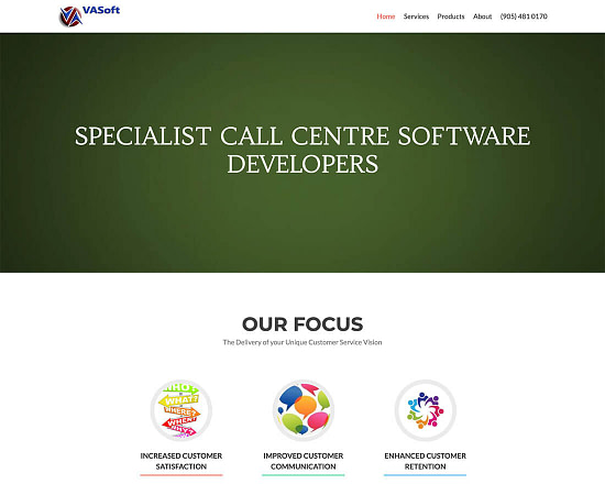 VASoft is a company that brings out call center software specialists. They are using an animated header banner for every section, which makes their website look “alive”.