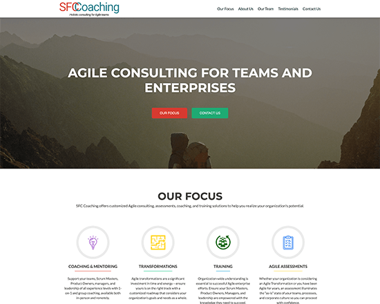 Agile consulting, assessments and coaching are the main services offered by the SFC Coaching company, which decided to use Zelle Pro for their site. And we have to admit the slick look goes really well with their business.